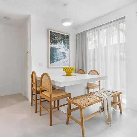 Det finns ett utrustat kök utrustat med vattenkokare, te-/kaffebryggare och kylskåp. Det tar 15 minuter med bil från den här 73 m² stora lägenheten till flygplatsen Sunshine Coast Maroochydore.